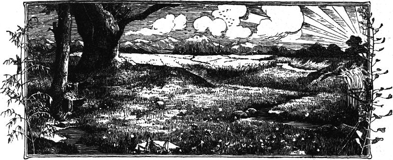 Es ist Hochsommer. Eine sonnige Landschaft breitet sich vor schneebedeckter Alpenkette aus. Im Wiesengrunde leuchten die Blumen im Sonnenschein und bieten ihre süße Gabe dem sie umschwärmenden Volke der Falter und summenden Käfer. Auch dort über die weiten Kornfelder gießt die Sonne ihre Strahlenfülle, um die Reife der goldenen Ähren zu vollenden. Und auf den plätschernden Wellen des Baches, der am Wiesenrand zwischen Steinen eilig hinabrauscht, der sonnendunstigen Ebene entgegen, spielen die Sonnenstrahlen, die das Wasser dort oben in den Firnfeldern aus langem, todesähnlichem Schlaf befreiten, damit es drunten seine lebenerhaltende Arbeit in unendlicher Verzweigung wiederaufnehmen kann. Über dem waldumrahmten Weiher weiter unten liegen blaue Schleier. Die Sonne, die das Wasser hinabführte aus den Höhen des ewigen Schnees, zieht es hier wieder empor, bis zu den Wolken, die die durstende Ebene mit ihren Regenschauern erquicken.