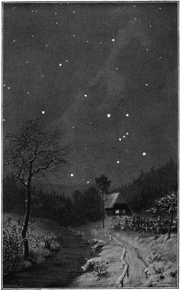Ein neues Wunder an diesem interessantesten aller Himmelsobjekte für den denkenden Beobachter schien diese Ansicht durch den Augenschein zu bestätigen. Nach einigen Monaten sah man nämlich den Stern von einem leuchtenden Nebel umgeben. Man nahm zuerst an, daß dieser schon immer vorhanden gewesen sei und nun erst[77] durch das neuaufflammende Licht des Sternes in seinem Innern uns sichtbar wurde. Als man den Nebel sich in den folgenden Monaten immer weiter ausdehnen sah, meinte man, daß das Licht so lange Zeit gebrauche, um den Nebel zu durcheilen, denn der neue Stern war offenbar auch für Fixsternverhältnisse sehr weit von uns entfernt und der Weg vom Mittelpunkte der Katastrophe bis zur Grenze des Nebelgebildes so ungeheuer groß, daß das Licht ihn erst in Monaten durchlaufen konnte. Nichts kann in diesem Falle wohl eindrucksvoller die unausdenkbar gewaltigen Dimensionen des Weltgebäudes uns vor Augen führen, als dieses Hinschleichen des Lichtes über die Himmelsdecke, von dem wir doch wissen, daß es 300 000 Kilometer in der Sekunde zurücklegt.
