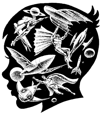 He discovered the Council was waiting for him. Frowning to cover his embarrassment, he took out the last of the Scout's finds. For a moment all of them were struck by the bright colors on the flat surface. The one old man reached out a trembling hand. "Records," he murmured incredulously. "Records such as our own race is said to have once made, long, long ago before Law." Reverently, he examined the cover, then with remarkable agility for one so decrepit he jumped to his feet and flung the thing from him. His face twitched with horror.