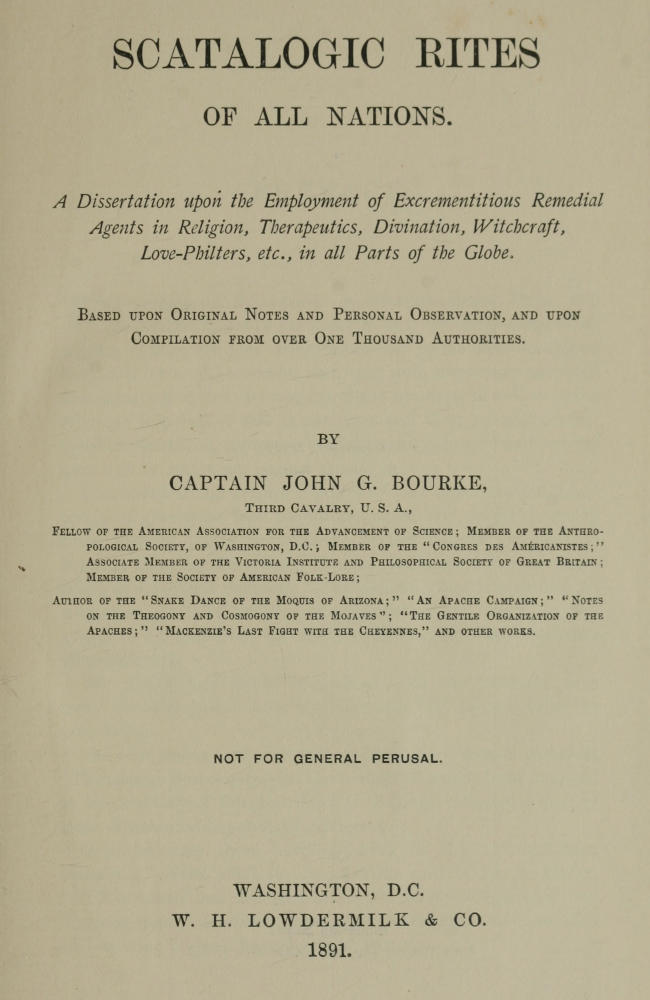 The subject of Scatalogic or Stercoraceous Rites and Practices, however repellent it may be under some of its aspects, is none the less deserving of the profoundest consideration,—if for no other reason than that from the former universal dissemination of such aberrations of the intellect, as well as of the religious impulses of the human race, and their present curtailment or restriction, the progress of humanity upward and onward may best be measured.