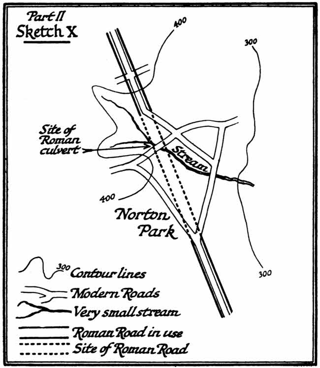 (3) The best example I know, as I have said, of a Roman road the evidences of which have nearly disappeared, but round which local roads have grown and which can still be identified as the core of these, is the short cut between Penkridge and Chester. It is very puzzling why the Roman road should here have disappeared. It is perhaps best to be explained by the continual fighting between the Eastern and the Western troops, which must have ravaged all that country between the first of the raids and the full conversion of England to civilization and the Christian religion which was the work of the seventh century.