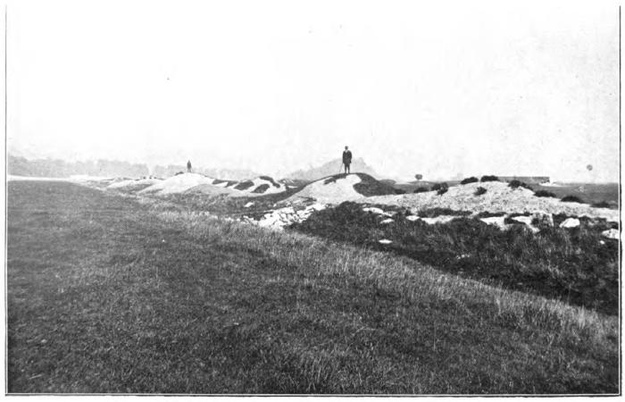 It may be asked, “Who originally constructed St. Andrews?” Its origin[20] appears to be shrouded in mystery: like Topsy, in Uncle Tom’s Cabin, it simply “growed.” But the fact of the matter is that St. Andrews differs from others in that it has always been deemed a sacrilege to interfere with its natural beauties, and it has been left almost untouched for centuries. No green-keeper has ever dared to shave down its natural undulations. Most of the bunkers have been left where nature placed them, and others have originated from the winds and the rains enlarging divot marks left by the players, and some of them possibly by the green-keepers converting those hollows where most players congregated, into bunkers, owing to the difficulty of keeping them free from divot marks. The bunkers at St. Andrews are thus placed in positions where players are most likely to go—in fact, in the precise positions which the ordinary Green Committee would suggest should be filled up. This is a significant[21] fact, and tends to show that many of our existing ideas in regard to hazards have been erroneous. Mr. John L. Low pointed out years ago that no hazard is unfair wherever it is placed, and this particularly applies if the hazard is visible, as it should be obvious that if a player sees a hazard in front of him and promptly planks his ball into it he has chosen the wrong spot.