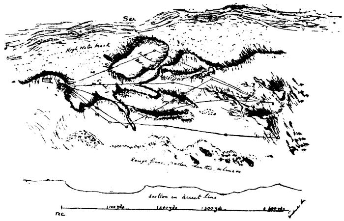 There are many positions by the seashore where a hole of this kind could be constructed, but it would be possible to make one of a similar type inland, especially[114] if the subsoil consisted of sand and the lie of the land was favourable. The seashore could be replaced by bunkers, old quarry workings, hummocky ground, rough, or even land out of bounds.