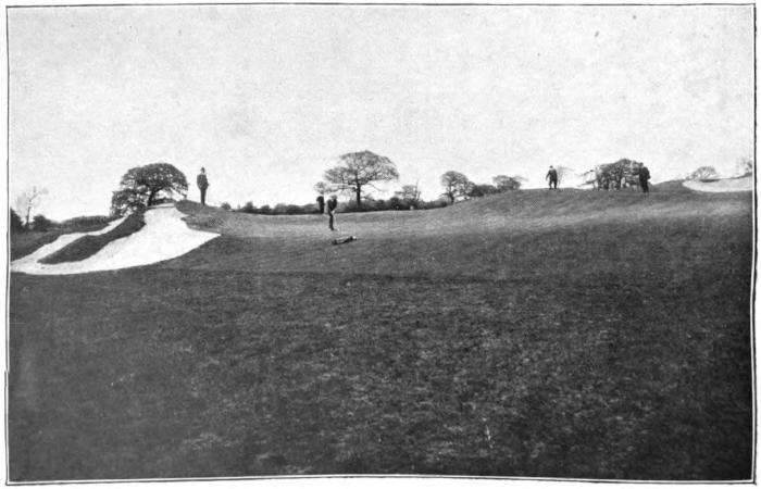 Blind holes on an inland course where there are no surrounding sandhills to locate the green should never be permitted, but an even more annoying form of blindness is that which is so frequent on inland courses—that is, when the flag is visible but the surface of the green cannot be seen. On a green of this description no one can possibly tell whether the flag is at the back, middle, or front of the green, and it is particularly aggravating to play your shot expecting to find it dead, and to discover that your ball is at least twenty yards short.