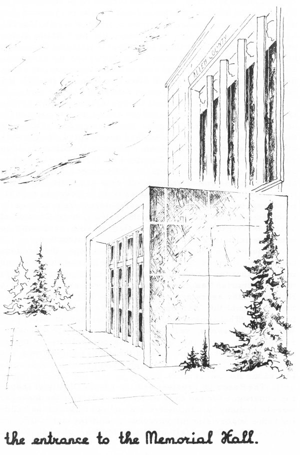 The War Memorial Coliseum was completed in September, 1952. Nearly eight years had elapsed since the Junior Chamber of Commerce had conceived the idea of erecting a suitable memorial to the war dead of Allen County. The men who had worked unremittingly through those years were amply rewarded when the building was opened by impressive dedicatory services.