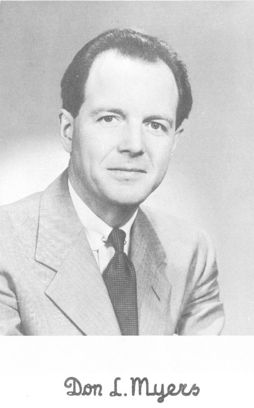 Don L. Myers was chosen manager of the War Memorial Coliseum in 1951 prior to the completion of the edifice; he continues in that capacity at the present time. Wide recognition has been accorded him; he was awarded a trophy by the International Association of Auditorium Managers for his efficient and successful management during the 1952-1953 season.