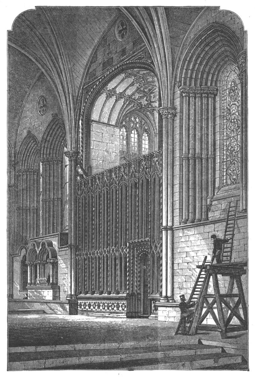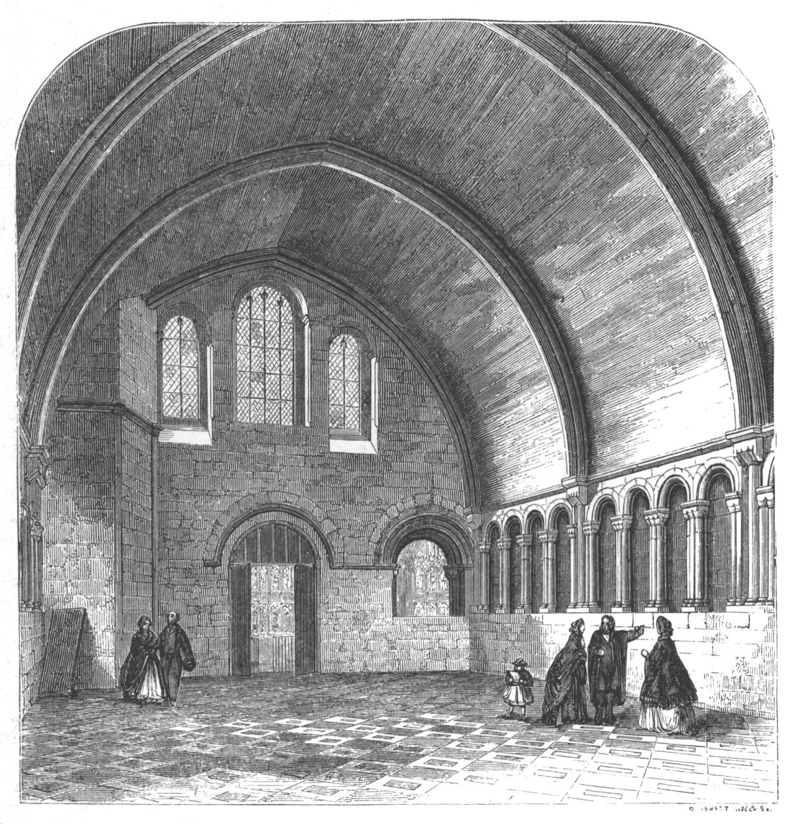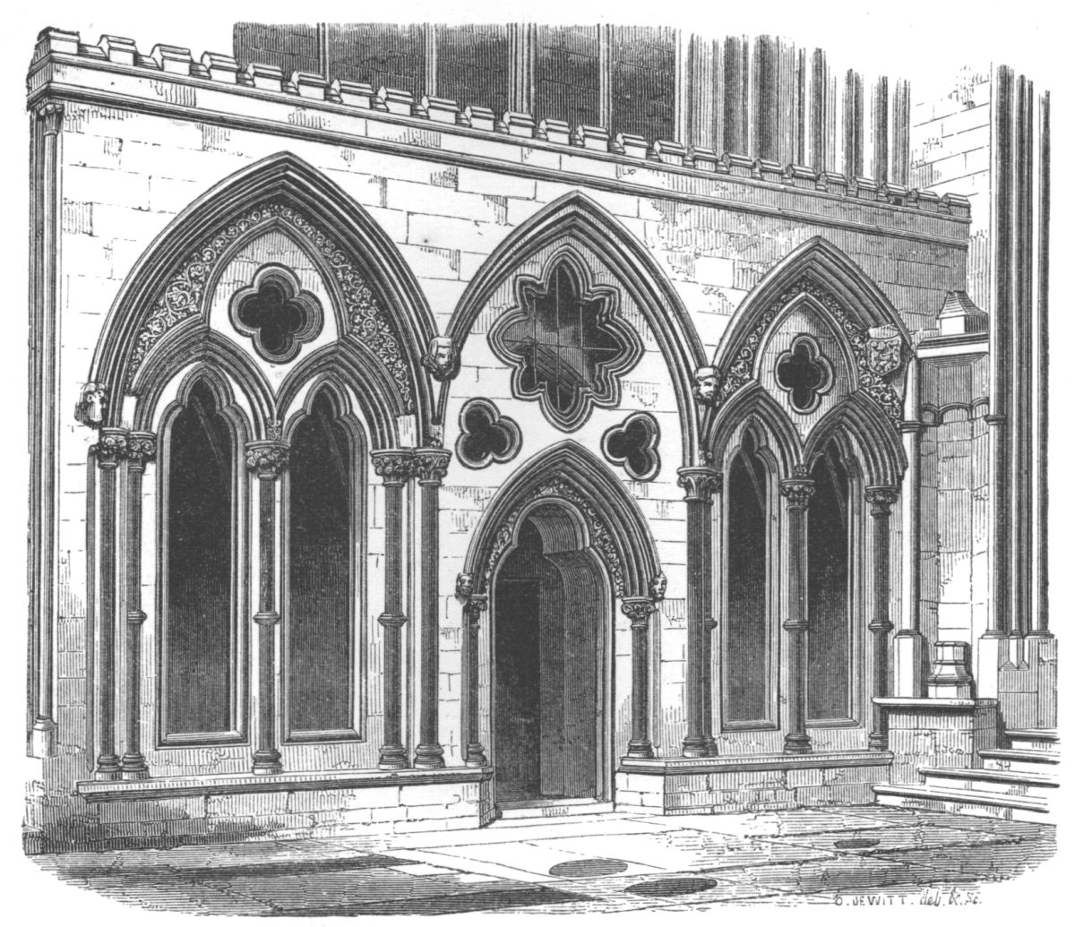 [95] J. H. Parker, Gent. Mag., Oct. 1862. Professor Willis considered the hall to be “in so ruinous a state that the expense of restoring it would have been greater than justifiable on such an object (especially as there would have been no use for it when done), and the Dean and Chapter had to keep up and maintain the cathedral in a state worthy of its original purpose.”—Gent. Mag., Sept. 1862.