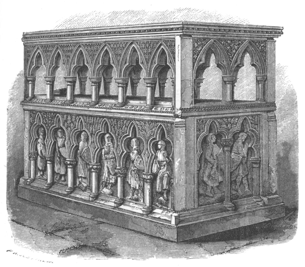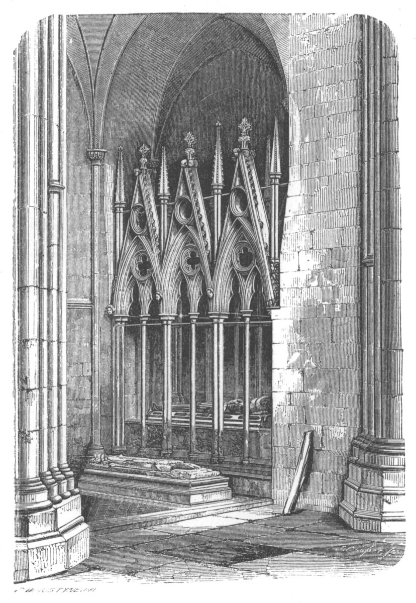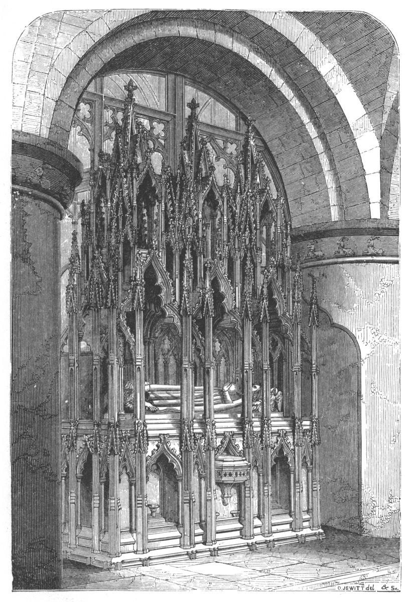 [78] Leland (Itin.) thus notices the tomb:—“In presbyterio, Johannes Rex, cujus sepulchrum Alchirch, sacrista, nuper renovavit.” The time at which Alchirch was sacristan has not been ascertained, but it cannot have been long before Leland’s visit.