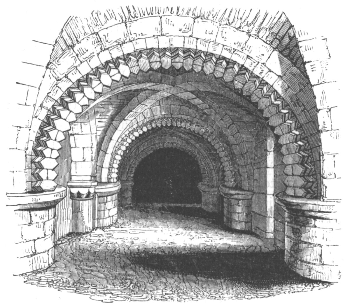 [43] “The English eastern crypts are Canterbury, Winchester, Gloucester, Rochester, Worcester;—all founded before 1085. After this they were discontinued, except as a continuation of former ones, as at Canterbury and Rochester. The Early English crypt of the Lady-chapel at Hereford is an exception.”—Willis, Architectural History of Canterbury Cathedral, p. 71, note.