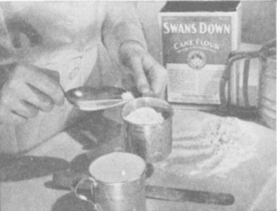 Do use good ingredients. You can’t do first-rate baking with second-rate materials. Use fresh, sweet shortening and eggs of fine quality. Use fine granulated sugar, unless some other kind is called for in your recipe. Remember that baking powder and flour are the most important ingredients in baking. Give yourself the protection and advantages of Calumet, the Double-Acting Baking Powder ... and of Swans Down Cake Flour, too, whenever the recipe calls for it. It gives to cakes and to certain quick breads a fineness and lightness that you cannot expect from ordinary flour.