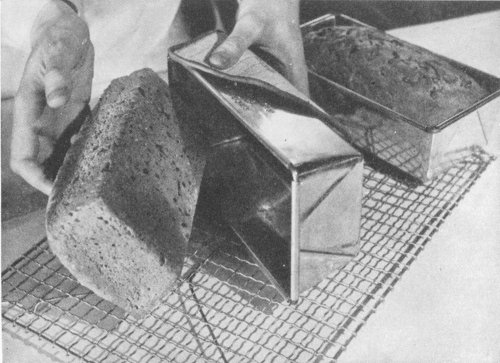 Do handle cakes carefully, after baking. Place butter cake and pan on cake rack, for about 5 minutes; then remove from pan, and turn cake, top side up, on rack to finish cooling. For sponge cakes, follow directions given in recipes.