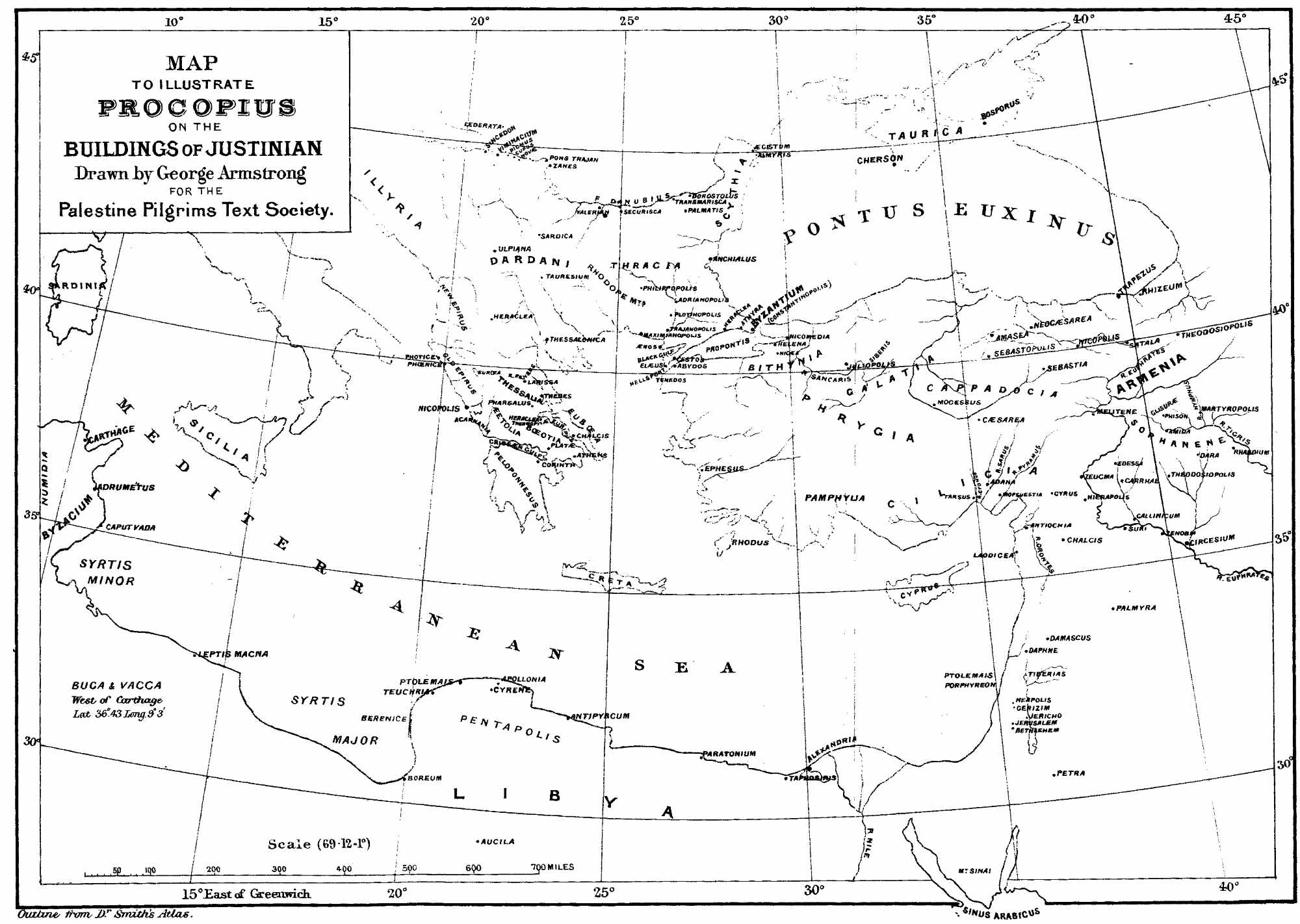 From Bethlehem to Damascus—from the sea-coast to v far beyond the Jordan—there are few places of note in which some remains, dating from his era, do not exist, or in which, at the least, some records of his works are not left in the history of his time. To him Mount Sinai owes the Church of the Holy Virgin.