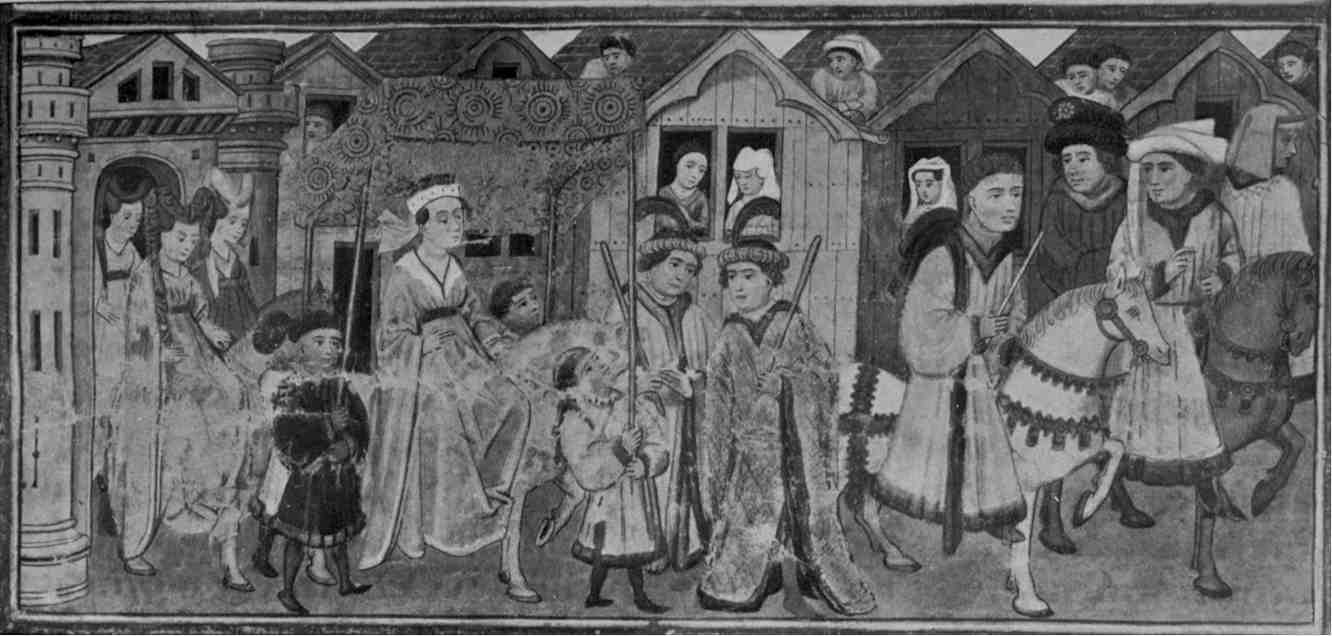 Elisabeth grandissait entourée de nombreuses affections, car dans l'antique château vivaient avec Etienne II et Thadée Visconti, Anne de Neuffen, femme de Frédéric, et le duc Jean avec sa jeune femme Catherine de Görz[38]; à de longs intervalles, entre une Croisade en Prusse et une campagne sur les bords du Danube, arrivaient à Munich le duc Frédéric et le duc Etienne[39], et le séjour de celui-ci était toujours marqué par quelque fête.