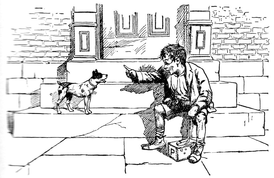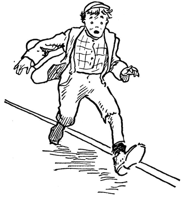 “The children laughed, he looked so queer, with the newsboy’s cap hung on his ear.”