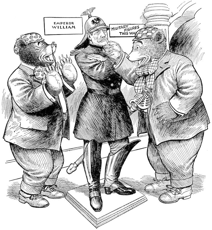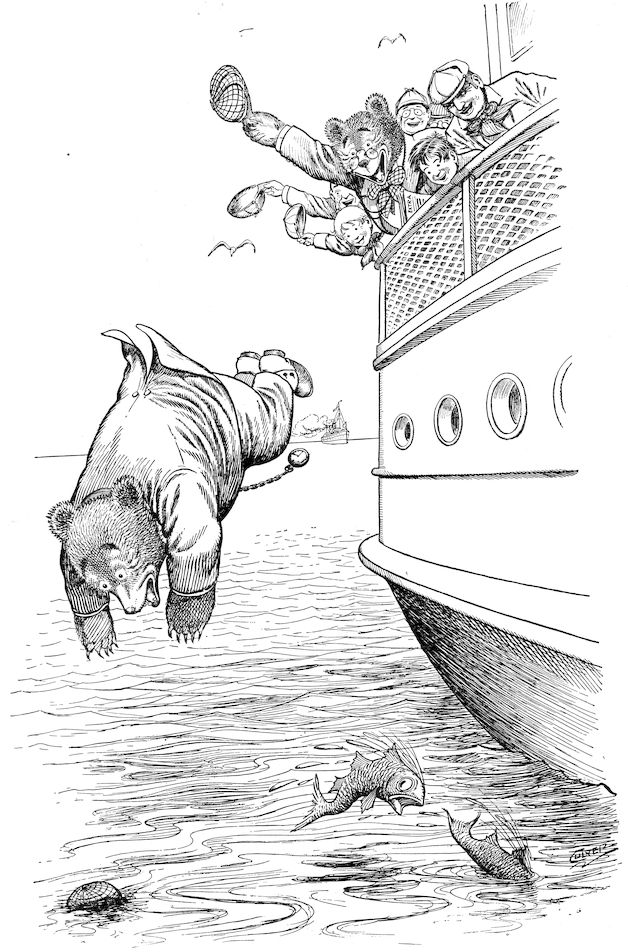 After having rested for the winter in their home in the mountains of Colorado, the Roosevelt Bears, now thoroughly used to the modern ways of civilization, once more become restless, and having a strong desire to see more of the world, start out upon their European tour. This book will record in picture and in verse their trip across the Atlantic, the tour through Ireland, Scotland and England, where they visit Stratford-on-Avon, the home of Dickens, Oxford University, the Tower of London, and meet King Edward, by whom they are entertained in royal fashion. Then over to Paris and to Holland and Germany, where they encounter Emperor William in the Black Forest From Germany they go to Russia, where they take the Czar out for a carriage ride, and through some mishap land in a dungeon cell. They next visit Switzerland and the Alps, then down to Rome, Venice and Athens.