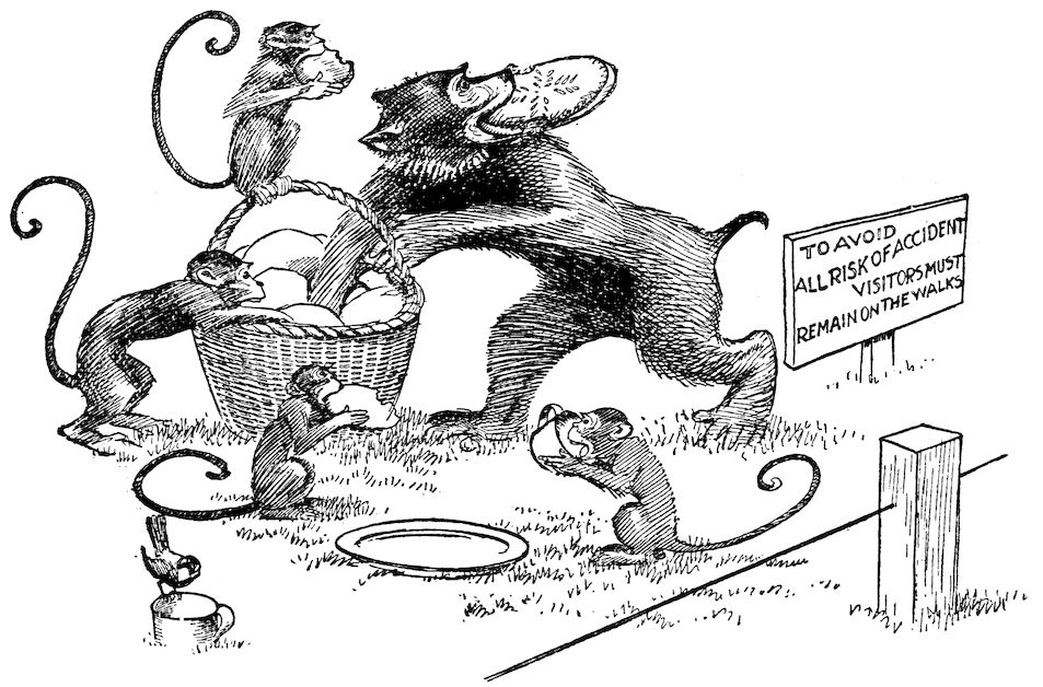 “The monkeys had gone in a solid bunch and captured the whole of the picnic lunch.”