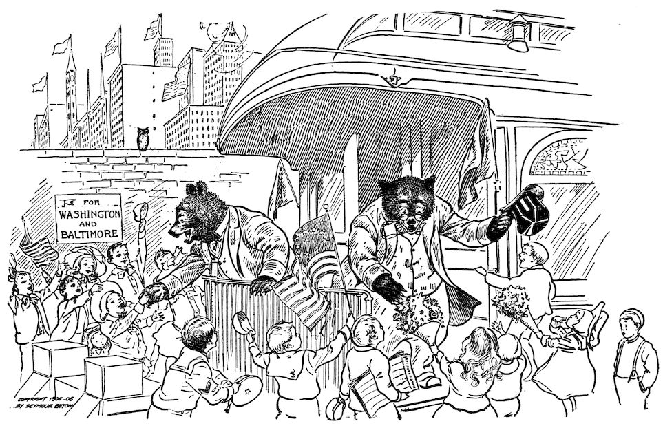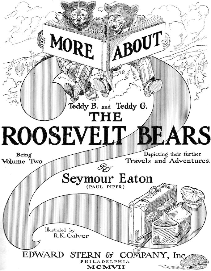 This book is a sequel to “The Travels and Adventures of the Roosevelt Bears,” and completes the story of the tour of TEDDY-B and TEDDY-G from Colorado to Washington. The third volume will report in jingle and picture the tour of the Teddy Bears abroad.