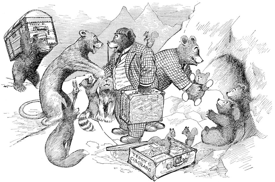 When in the autumn of 1905, I created the characters of TEDDY-B and TEDDY-G I builded better than I knew. I brought these bears out of their mountain den in Colorado and started them on their tour of the East to teach children that animals, even bears, may have some measure of human feeling; that the primary purpose of animals is not necessarily that of supplying sport for the hunter. That this lesson has been abundantly taught is proven by the overwhelming welcome given the Teddy Bears by the boys and girls of the United States; and it is safe to say that the traditional “bear will get you” has now and forever lost its frightening significance.