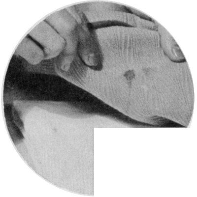 Iodine and sodium thiosulfate (“hypo”).—After the above treatment, put a few drops of tincture of iodine on the dampened stain with a glass rod. Let stand for 10 or 15 minutes; then sponge with a solution prepared by dissolving several crystals of sodium thiosulfate in ½ cup of water. Rinse well in water.