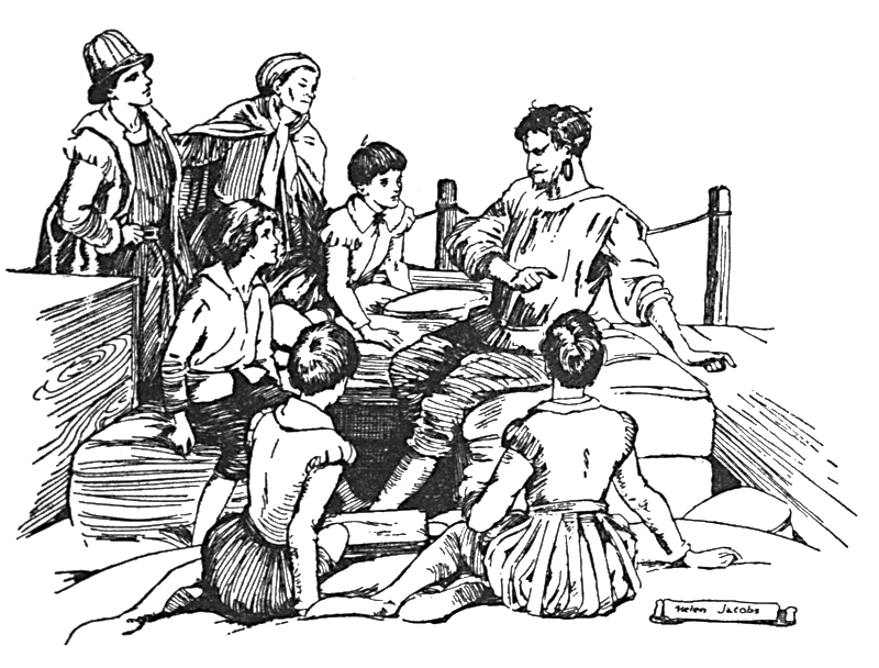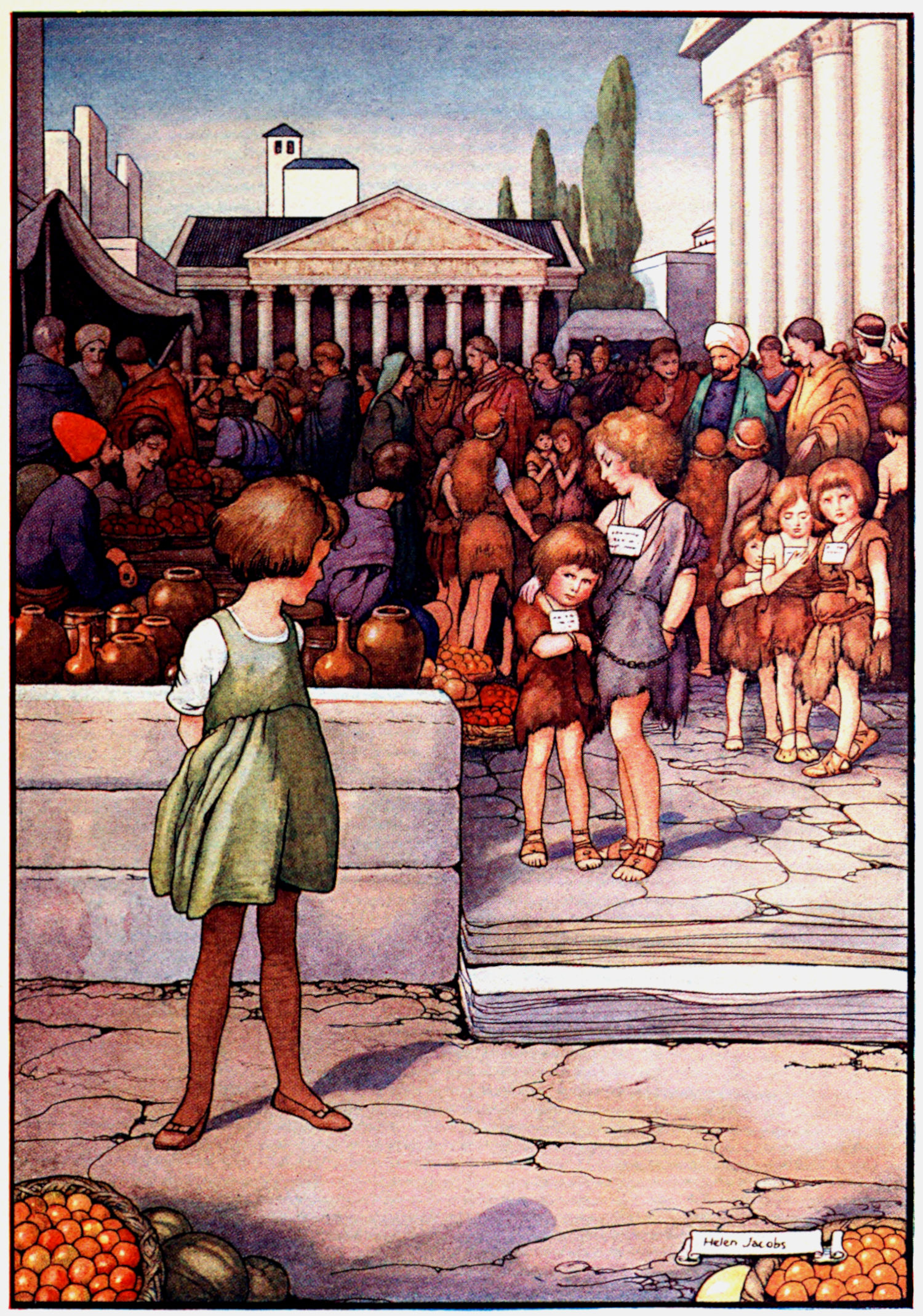 There was the Roman city, with its fortress and its market-place filled with the British people the Romans had conquered. Then the city of the Middle Ages, inhabited by a different race—the English race—the little city with its gabled houses encircled by fields and woods. Next came the city of Elizabeth’s day, richer and bigger now, with its ships floating up to London Bridge, its beautiful “Chepe” or market-place crowded with prosperous people.