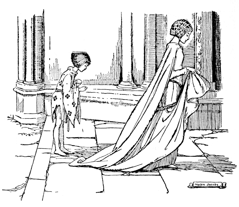 “The men are quite, if not more elegant, than the women,[Pg 163] you see—in this reign of George the Second,” said Godmother. “Here comes one, however, who is by no means well-dressed,” she added, smiling.