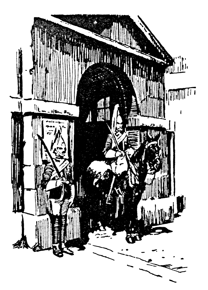 In a flash they were there, and at first sight Betty could scarcely believe it was the same Fleet Street she had left only a few hours previously. In a minute or two, however, she recognized it, in spite of the changes, for she stood close to the entrance to the Temple, and not far from it rose the church of St. Clement Danes. But the great pile of the new Law Courts had vanished, and so had the monument with the Griffin upon it in the middle of the road. Where that had stood an hour or two previously there stretched a fine stone gateway, and a line of little shops took the place of the Law Courts.