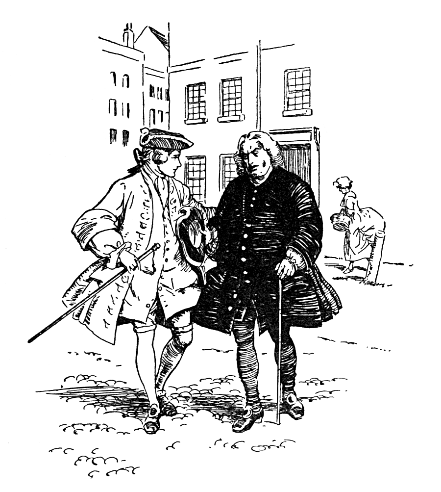 “Here is the book that will take us back to-day,” she said. “It’s called Boswell’s Life of Johnson, and it’s almost as good for news of the eighteenth century, as Pepys’ Diary is, for news of the seventeenth. Shut your eyes, hold the book in the magic[Pg 161] way, and say, as Johnson used to say to his friend Boswell, ‘Sir, let us walk down Fleet Street.’”