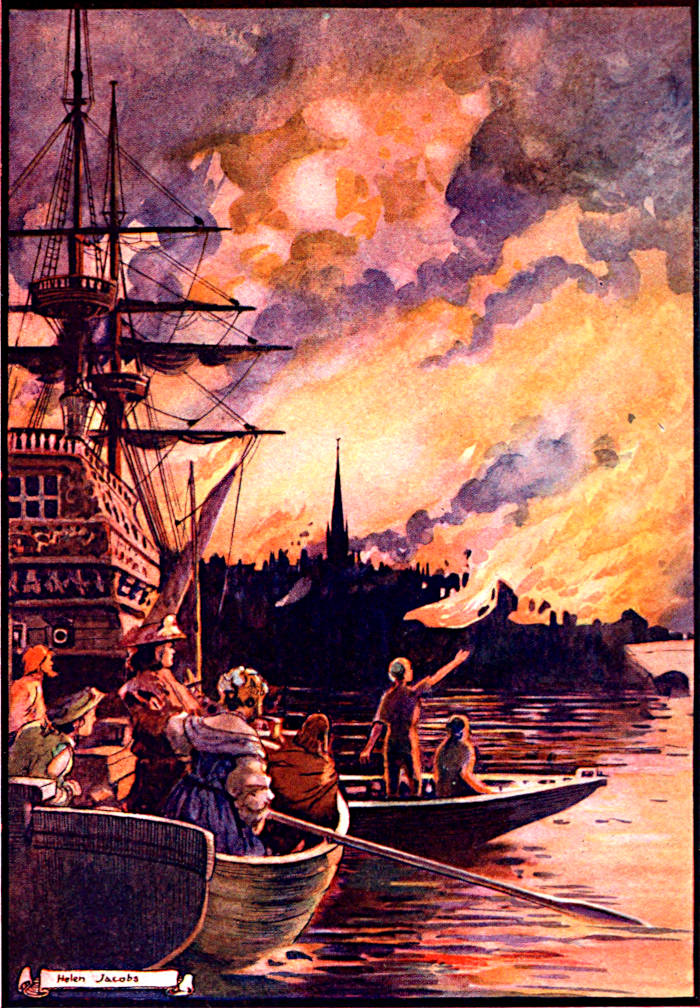 Again she saw it a heap of ruins in Restoration days, with only a few of its buildings remaining after the Great Fire that swept it clean. Her next glimpse of it showed her London two hundred and fifty years after the Fire—a different London, of broader streets, and plainer and more healthy dwellings, with churches and public buildings, different altogether in architecture from those of the Middle Ages, or of the days of Elizabeth. Finally there was the London of her own day, the huge city of streets and factories and big modern buildings, among which there still lingered not only many rows of seventeenth-and eighteenth-century houses and many churches and other public buildings dating from the time when London rose from its ashes after the Great Fire, but also buildings far, far older than these. There was the Tower; there was Westminster Abbey; there was Westminster Hall. These had looked down for ages upon the city by the Thames, and watched it through its many changes from early times to the day in which Betty herself lived.