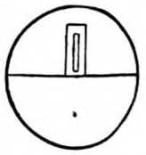 An excellent trick, to be used in conjunction with the preceding, is the following: The performer shows a coin and forthwith proceeds to pass it into the hat by way of the crown. That there may be no doubt as to the actual passing of the coin, it is left sticking halfway through the hat; a final push and it is heard to fall inside. The coin used is a trick one, constructed as follows: A groove is first turned round its extreme edge deep enough to conceal a small India-rubber band. It is next cut in half across its diameter. A hole is drilled in the centre of one half, in which is inserted a needle point. In the other half a slot is cut to admit the needle. The two halves are now placed together and kept in position by passing the band round the groove afore mentioned (Fig. 9). While giving the final push it is, of course, withdrawn and palmed.
