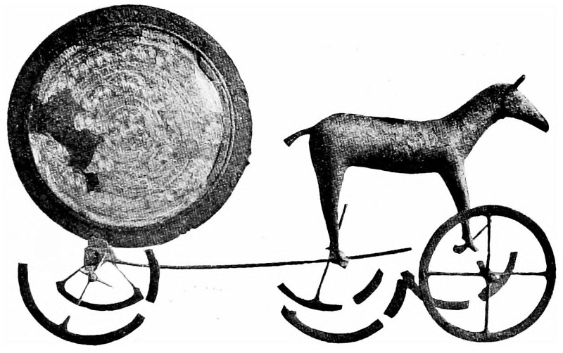 | HORSE DRAWING DISC OF THE SUN. OLDER BRONZE AGE National Museum at Copenhagen. |