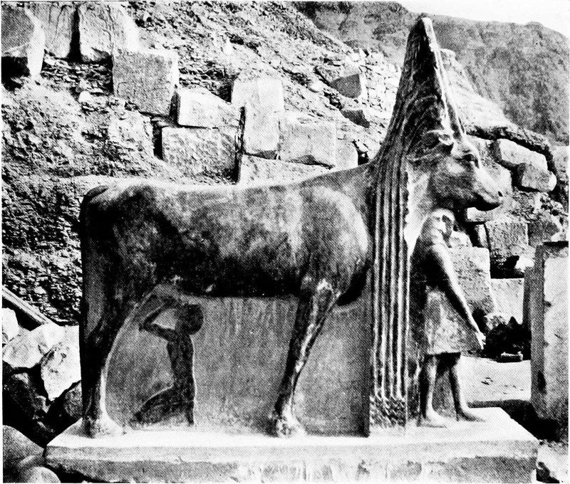 | HATHOR COW Found in 1906 by Dr. Édouard Naville at Deir-el-bahari. By permission of the Egypt Exploration Fund. |