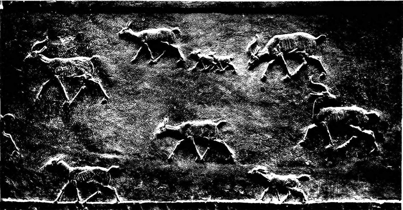 | WILD GOATS AND YOUNG Assyrian Relief. British Museum. (Mansell.) |