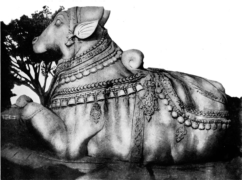 | RECLINING BULL Ancient Southern Indian sculpture. From a photograph in the India Museum. |