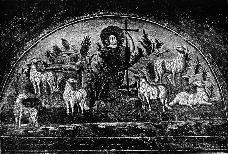 | “IL BUON PASTORE” Mosaic in the Mausoleum of Galla Placidia at Ravenna. |