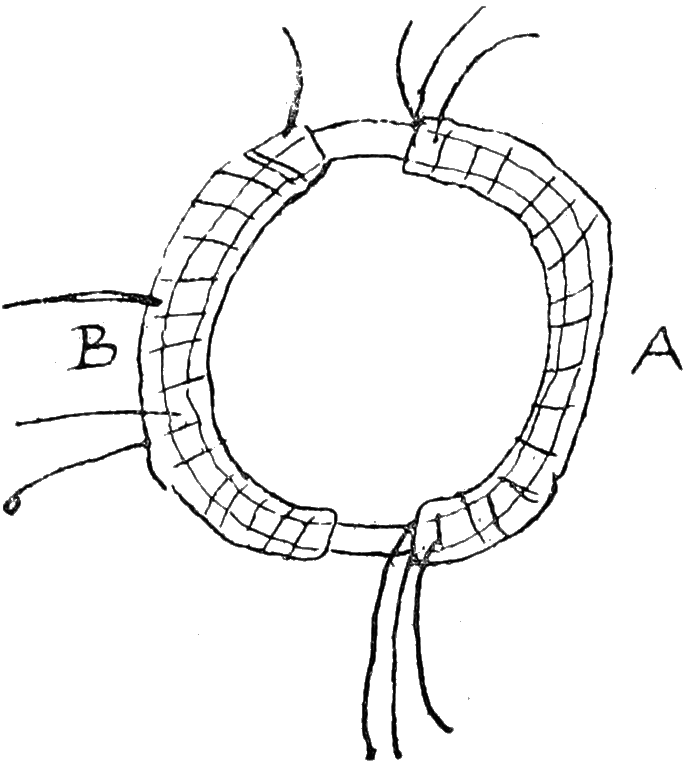 50 The accompanying diagram (Fig. 20) was not given by Faraday. It was pencilled by the author more than twenty years ago in the margin of his copy of Faraday’s “Experimental Researches,” vol. iii., p. 450, opposite this passage.