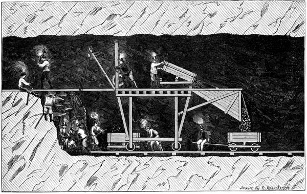 In same report, page 64, the consulting engineer, Benj. H. Latrobe, states: “In the east heading of the West Shaft experiments with Nitro-Glycerin as an explosive were made with highly favorable results, as reported by the chief engineer who states, the forward progress in the heading proper (six by fifteen in section) as doubled, and in the heading enlargement (to ten and a half and fifteen) as trebled by this new agent when compared with gunpowder. He also reports $10.20 per [Pg 9] cubic yard saved in the heading, and $3.64 in the enlargement, on a similar comparison with gunpowder, results certainly of the most encouraging character, and inviting to farther and persevering effort for the safe and successful use of the new explosive.”