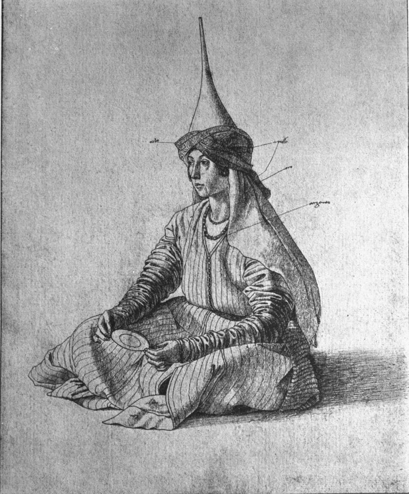 “THE TURKISH LADY.” DRAWING IN PEN AND INK BY GENTILE BELLINI IN THE BRITISH MUSEUM. SIZE, 8⅜ × 7 IN.