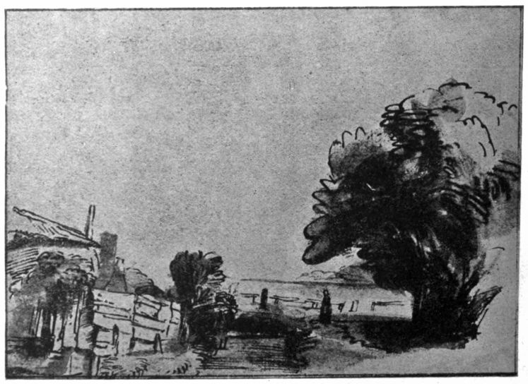 “LOT AND HIS FAMILY LEAVING SODOM.” DRAWING IN PEN AND INK BY REMBRANDT IN THE BRITISH MUSEUM. SIZE, 6⅞ × 9½ IN.