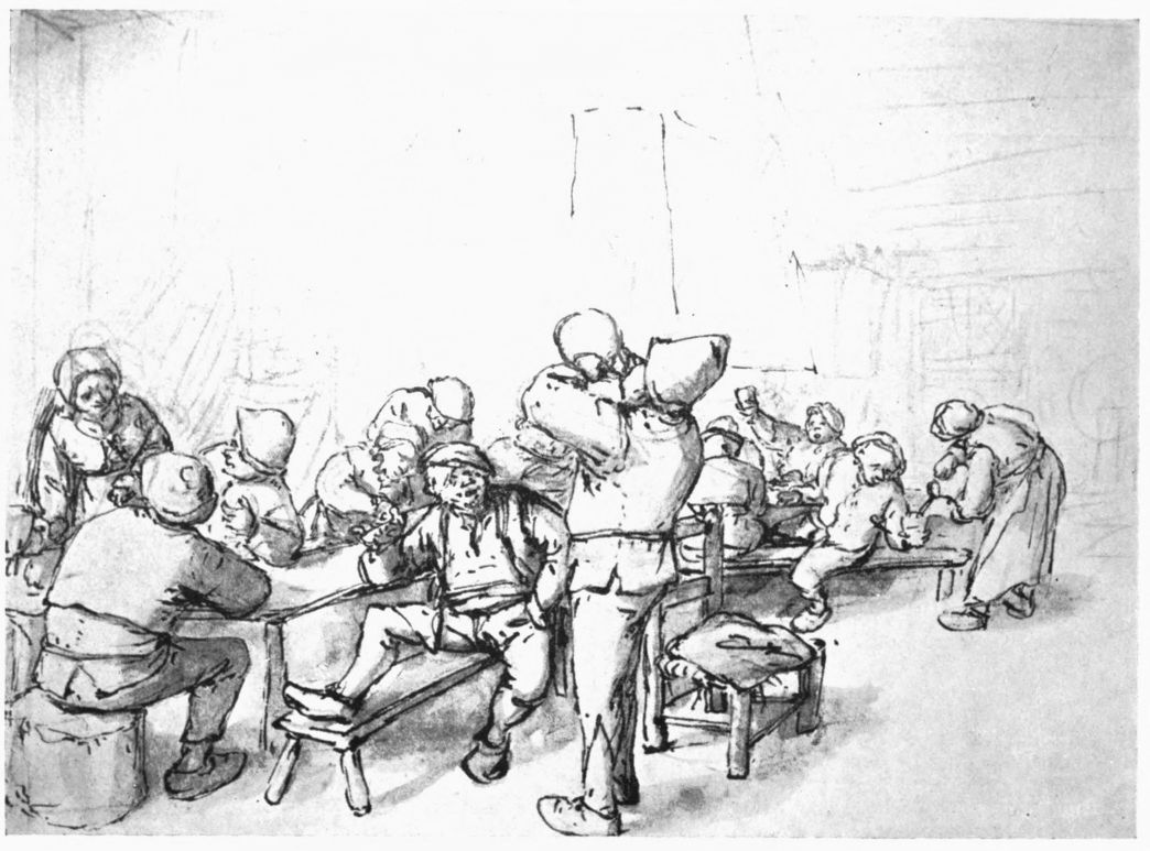 “TAVERN SCENE.” DRAWING IN PEN AND INK BY ADRIAEN VAN OSTADE IN THE POSSESSION OF G. BELLINGHAM SMITH, ESQ. SIZE, 6¼ × 8⅜ IN.