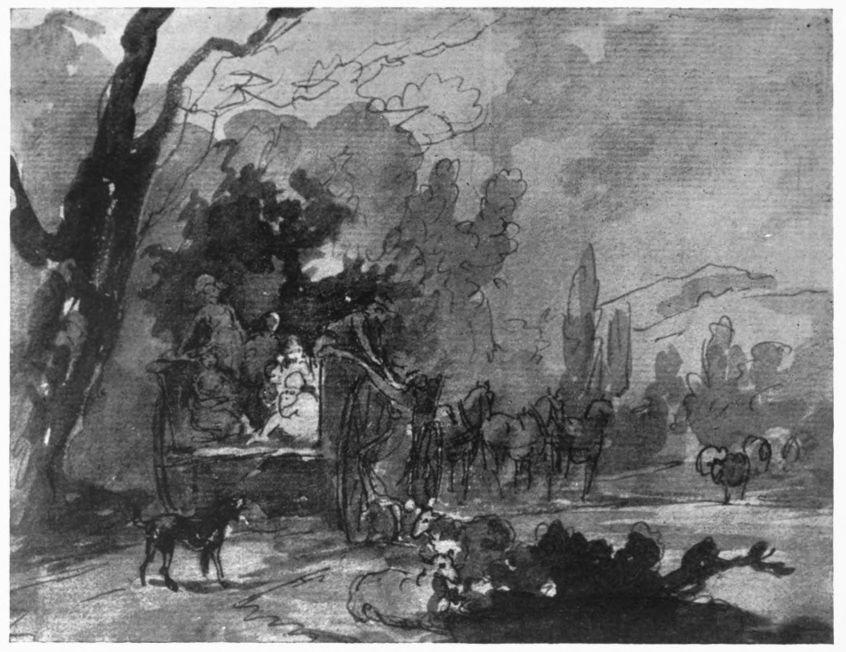 “THE HARVEST WAGON.” DRAWING IN PEN AND INK BY THOMAS GAINSBOROUGH, R.A., FORMERLY IN THE PFUNGST COLLECTION