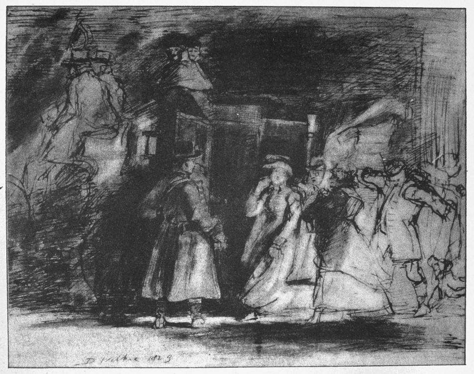 “THE MAIL COACH.” DRAWING IN PEN AND INK AND WASH BY SIR DAVID WILKIE, R.A., IN THE POSSESSION OF G. BELLINGHAM SMITH, ESQ. SIZE, 9 × 11½ IN.