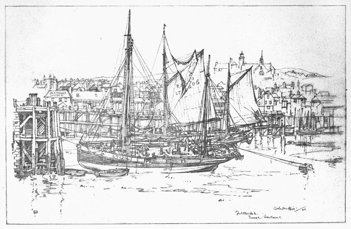 “QUAI DU CANAL, MARSEILLES.” DRAWING IN PENCIL AND WASH BY MUIRHEAD BONE. EXHIBITED AT THE GROSVENOR GALLERIES, LONDON.
