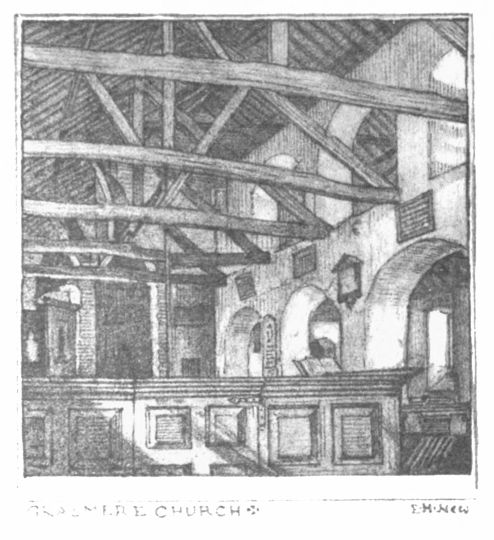 “GRASMERE CHURCH.” PENCIL STUDY BY EDMUND H. NEW FOR AN ILLUSTRATION IN PEN AND INK TO “POEMS BY WORDSWORTH,” SELECTED BY DR. STOPFORD A. BROOKE, PUBLISHED BY MESSRS. METHUEN AND CO. SIZE, 3 IN. SQ.