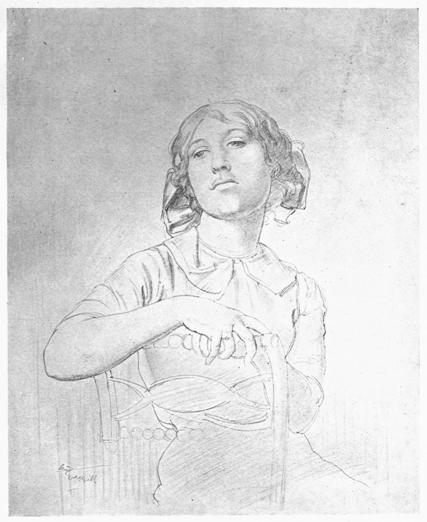 PENCIL DRAWING BY DANTE GABRIEL ROSSETTI IN THE POSSESSION OF G. BELLINGHAM SMITH, ESQ. SIZE, 7½ × 6 IN.