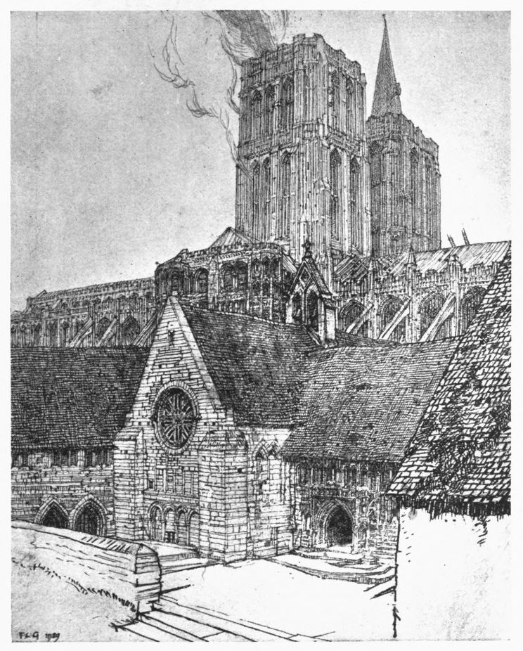 PENCIL DRAWING BY A. HUGH FISHER, A.R.E. IN THE POSSESSION OF CHARLES EMANUEL, ESQ. SIZE, 11⅛ × 4½ IN.