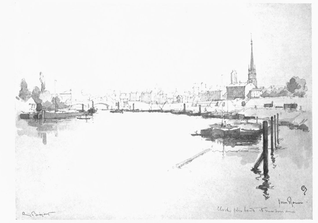 “CRÈVECŒUR.” DRAWING IN PEN AND INK BY A. LEPÈRE IN THE POSSESSION OF MONSIEUR ED. SAGOT. SIZE, 5½ × 8⅝ IN.