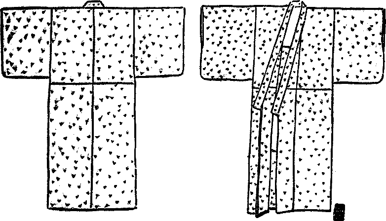 Japanese and foreign dress—Progress in the latter—Japanese clothes indispensable—Kimono—Cutting out—Making of an unlined dress—Short measure—Extra-sized dresses—Yukata—The lined kimono—The wadded kimono—Under-dress—Underwear—Obi—Haori—The crest—The uncrested haori—Hakama—Socks—How to dress Wearing of socks.