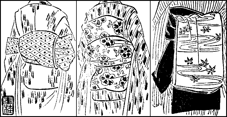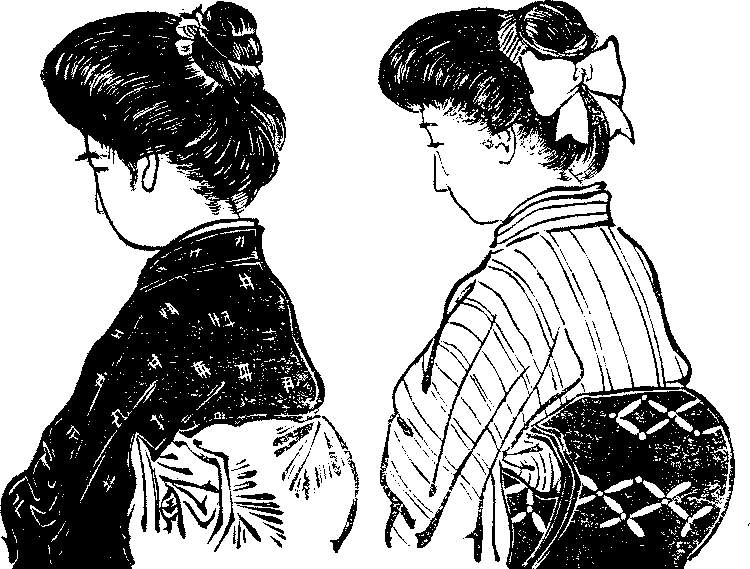 Attempts at Europeanisation—Difference between Japanese and foreign dresses—Expense and inconvenience of foreign dresses—Japanese dresses not to be discarded—How the female dress differs from the male—Underwear and over-band—Haori—Hakama—Obi—How to tie it—The dress-obi—The formal dress—Home-wear—Working clothes—The sameness of form—The girl’s dress—Dress and age.