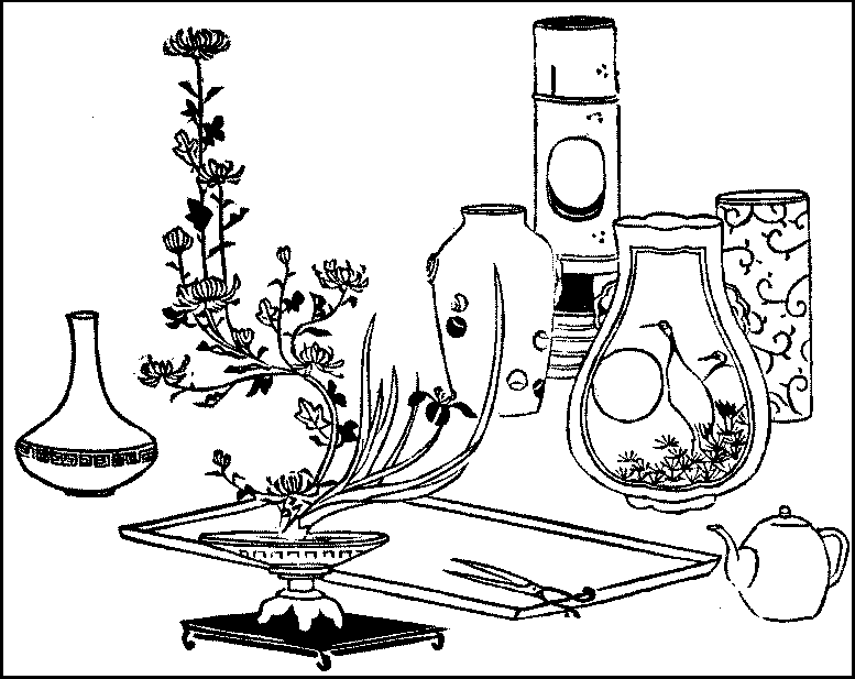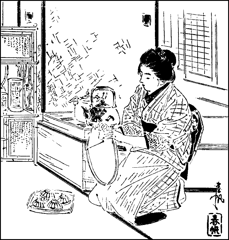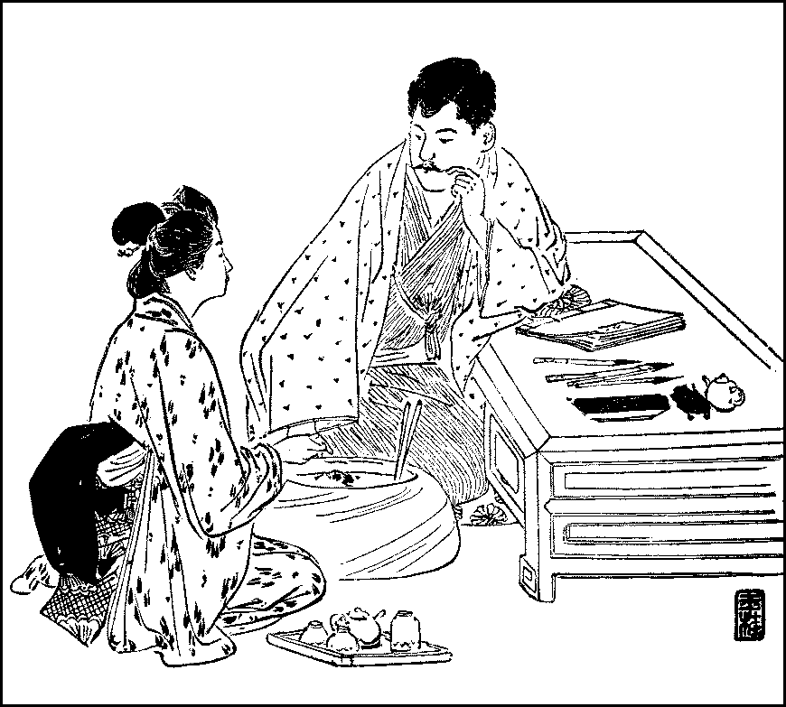 Composition—The writing-table—Odes—Songs—The haiku—Chinese poetry—Tea-ceremony—Its complexity—Its utility to women—The flower arrangement—The underlying idea—Its extensive application—The principle of the arrangement—Manipulation{v} of the stalks—Drawing water—Vases—Tray-landscapes—The koto—The samisen—Its form—Its scale—How to play it—The crudity of Japanese music—Its unemotional character.