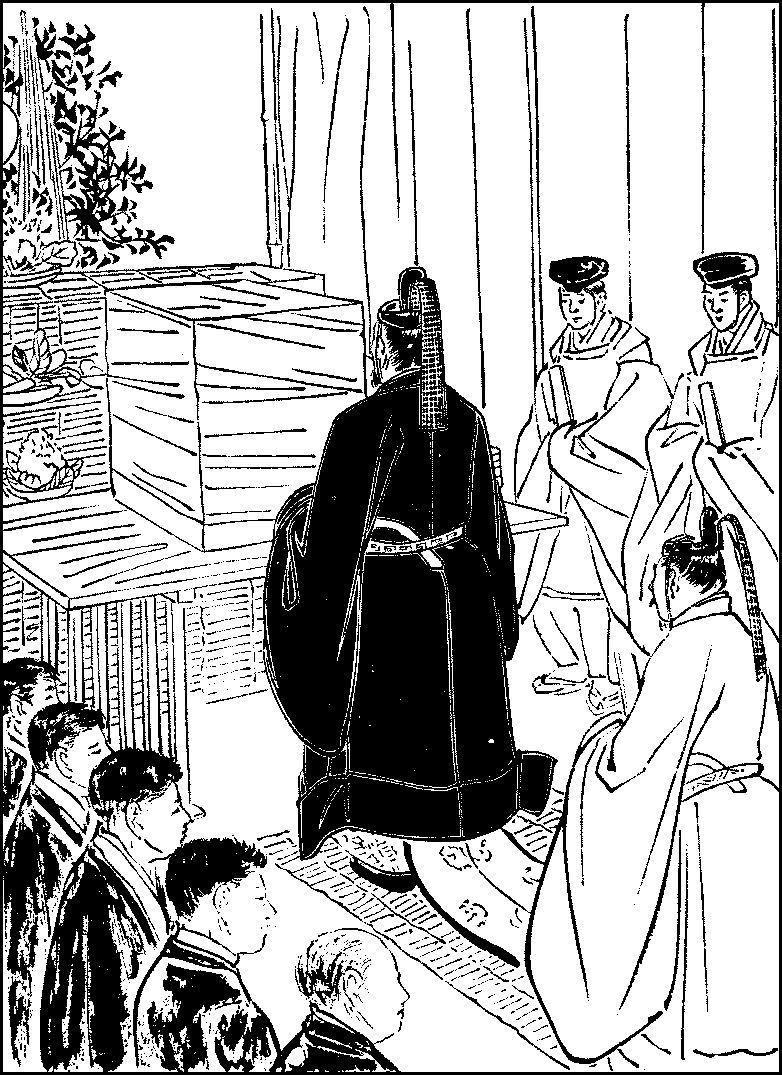 On the second or third of February ends the period of greater cold, and with it nominally the winter season. In the evening peas are parched and thrown about in every room with the cry, “Fortune within,” and then they are flung outdoors with the shout, “Demons without.” This is to purify the house for the new spring season; and the members of the family eat each a number of these peas, which is one in excess of the years of their age. The eleventh is one of the three great national holidays; it is the anniversary of the coronation of Emperor Jimmu, the founder of the Japanese Imperial line, the other two being the New Year’s Day and the Emperor’s Birthday. There are six ordinary national holidays, namely, the anniversary of the death of Emperor Komei, the father of the present Emperor (January 30th), the Feast of the Vernal Equinox (March 21st or 22nd), when offerings are made to the Imperial ancestors on the equinoctial day, the anniversary of the death of Emperor Jimmu (April 3rd), the Feast of the Autumnal Equinox (September 23rd or 24th), the Feast of the New Season’s rice which is offered at the great Shrine of Ise (October 17th), and the Feast of the New Rice which is offered to the other deities and eaten for the first time in the Imperial Palace (November 23rd).